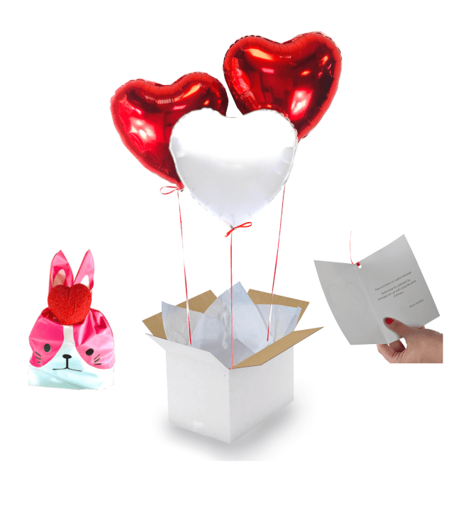 - Bouquet Coeur Blanc 2 Coeurs Rouges+Ballotin de Big Fraise Tagada